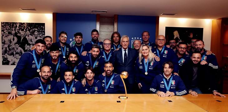 Due giorni dopo la finale del Mondiale di beach soccer con il Brasile, la Nazionale italiana è stata ricevuta in federazione. Il presidente: “Uno spot per tutto il mondo del calcio italiano”