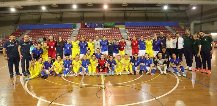 La partita. Per tutto il corso del match sono Coppari e compagne a imporre il proprio ritmo, riuscendo a tener botta anche alla grande fisicità della squadra del Ct Oleh Shaytanov. Nonostante un numero più alto di occasioni create, però, a mezzo minuto dall’intervallo Tytova porta avanti le ospiti trasformando un calcio di rigore assegnato per fallo di Dal’Maz. Nella ripresa la musica non cambia, le Azzurre si gettano in avanti e trovano il pari con Sara Boutimah dopo appena tre minuti. Una lunga fase di equilibrio, nel risultato più che nel gioco, con il pallino sempre in mano all’Italia, viene spezzata dalla rete di Bruna Borges al diciassettesimo: la calciatrice del Pescara ritrova così in un colpo solo la Nazionale, dopo l’assenza dovuta a un lungo infortunio, e il gol. Nel finale l’Ucraina inserisce il portiere di movimento, senza mai impensierire Dibiase, subentrata a 5′ dalla fine della gara ad Ana Sestari. Finisce così 2-1 per l’Italia, un’ottima iniezione di fiducia in vista dei prossimi appuntamenti post-estivi, col Main Round dell’Europeo da affrontare contro il temibile Portogallo. Da segnalare, l’esordio scintillante in Azzurro della classe 2002 Silvia Praticò, così come dei primi minuti in Azzurro di Chiara Pernazza, Giorgia Verzulli e Gaby Vanelli.