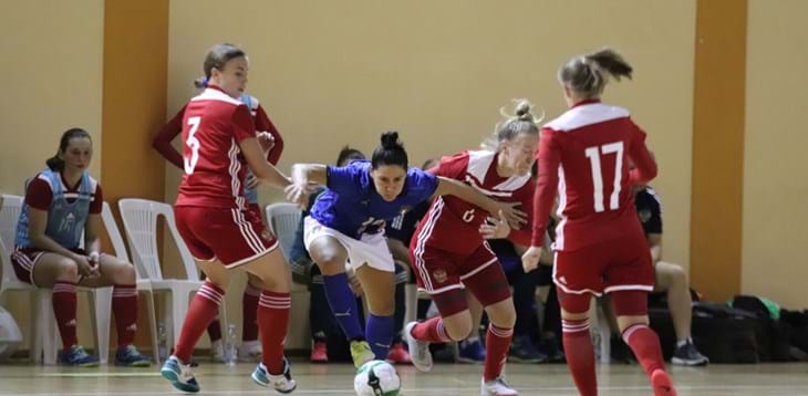 I gol tutti nel primo tempo, con Renata Adamatti che sblocca la sfida al quarto: recupero palla in pressione di Barca e serpentina della giocatrice dello Statte per l’1-0 dell’Italia. Le Azzurre, padrone del campo, giocano con grande intensità e abnegazione, ma al decimo un siluro su punizione di Samoilova impatta la sfida.