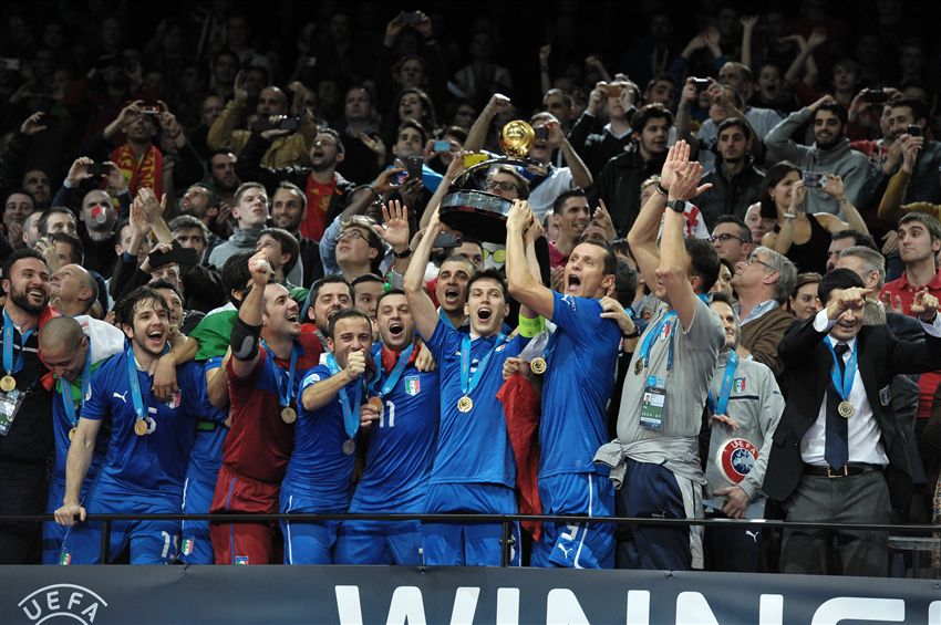 ITALIA ALLE FASE FINALI L’obiettivo dichiarato di Musumeci e compagni è qualificarsi alla fase finale, in programma fra un anno in Lettonia e Lituania. Ma d’altronde la storia dell’Italia e dell’Europeo di futsal racconta di un grande feeling. Basta citare i numeri principali per capirlo: la Nazionale azzurra è infatti l’unica, assieme a Spagna e Russia ad aver partecipato a ogni edizione fin qui disputata. A partire dal 1996, infatti, tutte e tre hanno sempre giocato ciascuna delle 12 fasi finali della più importante competizione continentale. Un record che è ben chiaro nella mente di Samperi e dei suoi ragazzi: quando si parla d’Italia, si parla dell’élite della disciplina a rimbalzo controllato. La Nazionale è la terza squadra più medagliata (6, dietro a Russia con 10 e Spagna con 12) potendo vantare due vittorie (2003 e 2014), un argento (2007) e tre bronzi (1999, 2005 e 2012) ed è una delle tre ad aver trionfato in più di un’occasione, un record che condivide con il Portogallo (anch’esso con due titoli) e con le inarrivabili Furie Rosse (7 Europei vinti).