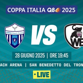 Beach Soccer 29 Giugno 2025 di Redazione · Published 29 Giugno 2025 Beach Soccer 2025, Coppa Italia Q8 I NAPOLI BS – WE BEACH CATANIA | Edizione 2025