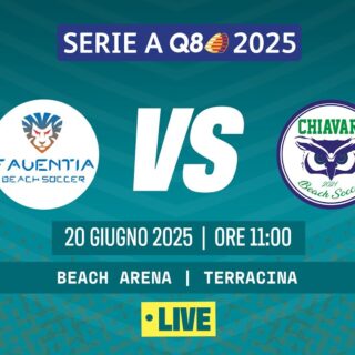 Beach Soccer 20 Giugno 2025 di Redazione · Published 20 Giugno 2025 Beach Soccer 2025, Serie A Q8 I FAVENTIA BS VS CHIAVARI BS Poule Promozione