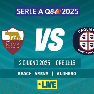 Beach Soccer 4 Giugno 2025 di Redazione · Published 4 Giugno 2025 Beach Soccer 2025, Serie A Q8 I ROMA BS – CAGLIARI BS Poule Scudetto