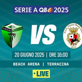 Beach Soccer 20 Giugno 2025 di Redazione · Published 20 Giugno 2025 LIVE!!! Beach Soccer 2025, Serie A Q8 I Icierre LAMEZIA BS – VASTESE BS Poule Promozione