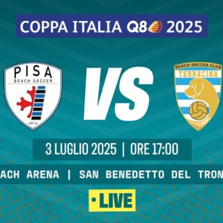 Beach Soccer / Le Partita LIVE!!! 19 Luglio 2024 di Redazione · Published 19 Luglio 2024 LIVE!!! Beach Soccer 2024 Serie A Poule Scudetto | LENERGY PISA – HAPPYCAR SAMBENEDETTESE