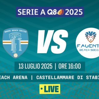 Beach Soccer 13 Luglio 2025 di Redazione · Published 13 Luglio 2025 LIVE!!! Beach Soccer 2025, Serie A Q8 I NAXOS BS – FAVENTIA BS Poule Promozione