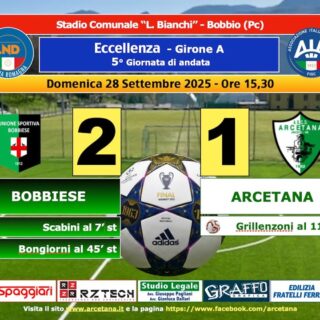 Eccellenza Video 29 Settembre 2025 di Redazione · Published 29 Settembre 2025 Bobbiese – Arcetana 2-1 Eccellenza – Girone A – 5° Giornata