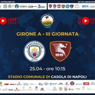 Le Partita LIVE!!! / Tornei Video 25 Aprile 2025 di Redazione · Published 25 Aprile 2025 LIVE!!! Manchester City-Salernitana Youth Cup Fattorie Donna Giulia Under 15 Aprile ore 10.15