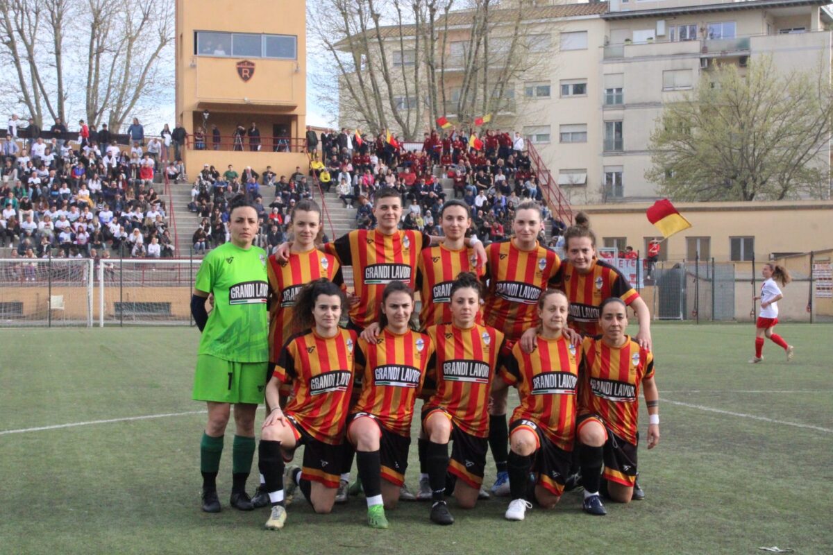 Valmontone (Rm) – L’Eccellenza femminile del Valmontone 1921 non ce l’ha fatta ad alzare al cielo di Roma la Coppa Italia di categoria. Nella finalissima giocata ieri presso lo storico campo “Roma”, le giallorosse di mister Luigi Colantuoni (ritratte nella foto di Roberto Benedetti prima della sfida) hanno ceduto di misura (0-1) contro l’Academy Ladispoli che l’ha spuntata grazie ad una rete realizzata nel primo tempo. Il patron Manolo Bucci e il presidente Massimiliano Bellotti, presenti sugli spalti, hanno commentato in coro la sfida: “Innanzitutto, vanno fatti i complimenti all’Academy Ladispoli che ha dimostrato di credere di più nel successo, ma per noi rimane comunque l’orgoglio di aver disputato una finale così importante. E’ stata una partita tesa, molto combattuta e con poche opportunità da rete. Il rammarico maggiore è per le nostre ragazze le quali hanno fatto un percorso che rimarrà nella storia, avendo vinto 16 partite su 16 di campionato e avendo conquistato tre vittorie e un pari nelle precedenti partite di Coppa. Probabilmente ieri hanno accusato un po’ di tensione e non hanno giocato come sanno fare”. Una vittoria le giallorosse e il club di via della Pace la hanno comunque ottenuta: “C’era un bellissimo clima sugli spalti e circa duecento persone (due pullman e diverse auto, ndr) sono arrivate da Valmontone – rimarcano Bucci e Bellotti – E’ il segno che la città ha risposto bene e si è avvicinata al calcio femminile grazie all’impegno e alla professionalità di questo gruppo, oltre che alla voglia della nostra società di valorizzare questo settore”. Adesso l’Eccellenza femminile del Valmontone 1921 si concentrerà sui play off che assegneranno un posto in serie C: “Gli scontri di andata e ritorno sono diversi dal campionato regolare, si ripartirà da zero – dicono i due dirigenti – A inizio stagione l’obiettivo primario era quello di fare il salto di categoria e ora le ragazze faranno di tutto per ottenerlo”.