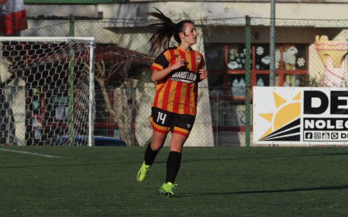Valmontone (Rm) – Il Valmontone 1921 ha conquistato la matematica certezza del primo posto nel girone B di Eccellenza femminile, anche se per la promozione in serie C bisognerà comunque passare dai play off. Intanto le giallorosse, reduci da un incredibile filotto di 13 vittorie in altrettante gare di campionato, dimostrano di essere ancora in gran forma: dopo il 9-0 sul campo della Lupa Frascati, domenica scorsa è arrivato un’altra goleada (sempre 9-0) nel match interno con la Vis Alatri: “Siamo scese in campo determinate e aggressive e a fine primo tempo la partita era già chiusa – dice il terzino destro classe 2006 Federica Trolli, ritratta nella foto di Roberto Benedetti – Io sono subentrata all’inizio del secondo tempo, accumulando qualche altro minuto ufficiale”. Il giovane difensore faceva parte del gruppo del Valmontone 1921 già nella passata stagione: “Quella è stata la prima annata nel calcio a 11 dopo aver giocato un paio di campionati di calcio a 5 sempre in questo club. Mi trovo molto bene perché c’è un bel gruppo: quest’anno è un’altra squadra e c’è tanta qualità, quindi non è facile conquistare un po’ di spazio. Mister Luigi Colantuoni, comunque, mi dà fiducia e cerca di aiutarmi e farmi crescere. Sono contenta delle partite che sto giocando”. Il primo posto del Valmontone 1921 non è stata certamente una sorpresa: “Siamo partite sin dall’inizio della stagione con questo obiettivo in testa, d’altronde questa è una squadra molto forte e ci meritiamo di stare in quella posizione di classifica. Dobbiamo rimanere sul pezzo perché nei play off si ripartirà da zero, ma siamo una squadra con grandi valori e dobbiamo arrivare in serie C. Poi siamo anche in finale di Coppa Italia e quello è un altro obiettivo a cui teniamo tanto”. Nel prossimo turno di campionato c’è la sfida esterna con lo Sporting Latina: “Al di là del valore e della posizione di classifica delle avversarie, noi entriamo in campo sempre con lo stesso obiettivo. Questo gruppo non ha mai abbassato la concentrazione e non lo farà adesso”.