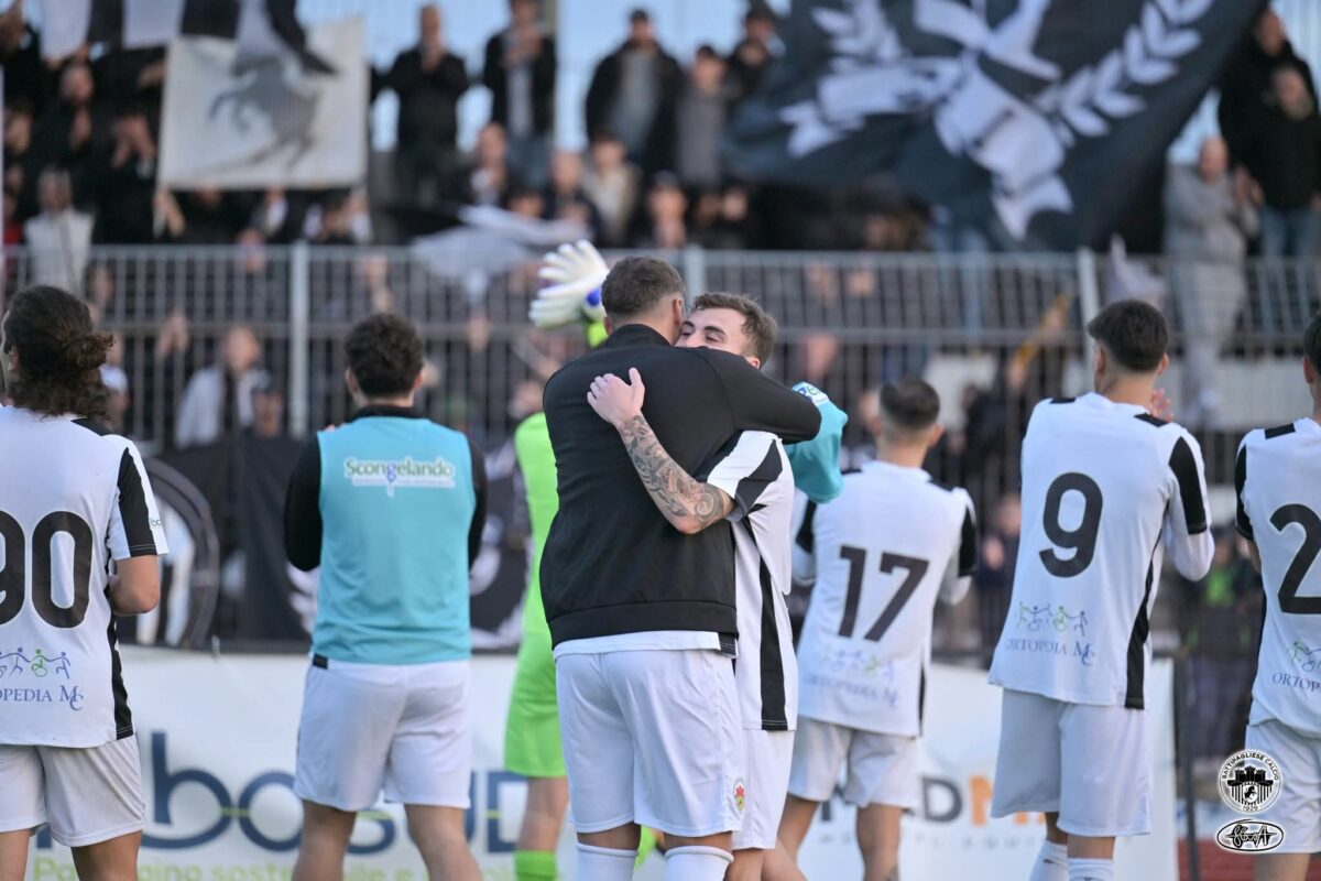 Il primo tempo è di chiara marca beneventana con la Battipagliese sulla difensiva. Si erge a protagonista Trapani che blocca, nell’ordine, Akrif e Cucciniello (al 1’), Alcantara (al 15’), di nuovo Akraf (al 19’) fino al palo colpito da Alcantara al 22’. Le mani di Trapani ancora protagoniste al 42’ per respingere la conclusione ravvicinata di Cacciottolo ma nulla può sul tap in a porta vuota di Cucciniello. La Battipagliese è tutta in una conclusione da buona posizione di Abayian, dopo una bella iniziativa personale di Salvador, parata a terra dal portiere e in due tiri cross, prima Formicola e poi Vitale, allontanati senza affanni dalla retroguardia di casa. Dagli spogliatoi esce Spagnuolo al posto di Paraggio e la Battipagliese cambia volto. Al 1’ Ripa apparecchia in profondità per l’esterno classe 2006 che non sbaglia; al 5’ lancio al bacio di Bisceglia dalle retrovie per l’inserimento sempre di Spagnuolo alle spalle della difesa e conclusione rasoterra imparabile; al 13’ sempre Spagnuolo ruba palla al portiere e crossa al centro per la testa di Abayian che appoggia nella porta rimasta sguarnita. In tredici minuti la Battipagliese ribalta il risultato e annichilisce il Puglianello. Ci sarebbe gloria anche per Ripa al 19’ ma i piedi di Isernia negano la gioia al capitano bianconero. Spagnuolo trova il tris personale al 39’ sempre su imbucata di Bisceglia dalle retrovie. Nell’ultimo minuto di recupero Cacciottolo trova il classico gol dell’ex che chiude la contesa sul 2 a 4.
