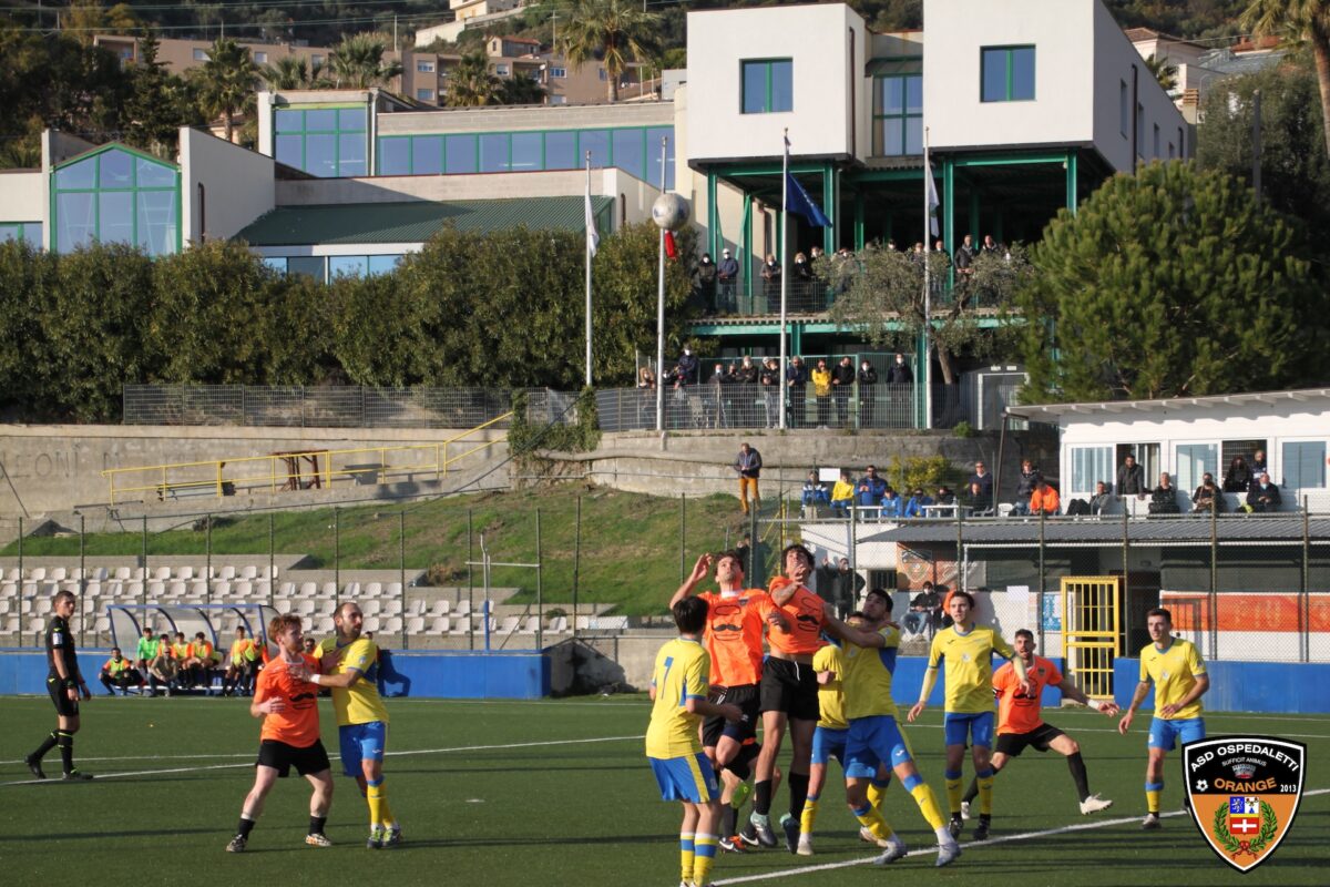 Nella ripresa l’Ospedaletti si mostra maggiormente propositivo nella metà campo avversaria, ma senza rendersi pericoloso sotto porta e le occasioni latitano da ambo le parti.