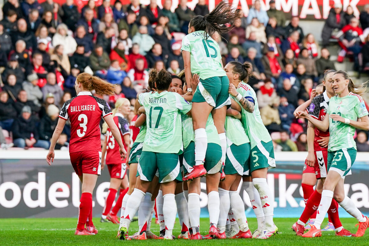 Il secondo tempo si apre con una chance per Cantore, che al 49’ non riesce a calibrare il piattone al volo sul bel traversone di Serturini. Nei minuti successivi l’Italia cambia marcia e al 58’ trova il vantaggio sull’asse Giugliano-Caruso: la centrocampista del Bayern serve in verticale la giallorossa, che di tacco premia l’inserimento in area della 25enne ex Juve, bravissima a trafiggere Ostergaard con un diagonale rasoterra. Al 71’ esulta anche Serturini, ma il gol viene annullato per fuorigioco. Poco male, perché da quel momento in campo c’è una sola squadra: a 11’ dalla fine Di Guglielmo raddoppia con un destro dal limite che si spegne sotto al sette. Il secondo acuto in azzurro del difensore anticipa di qualche minuto la 56° perla in Nazionale di Girelli, entrata in campo nella ripresa per chiudere i giochi con una deliziosa volée d’esterno. Da segnalare anche il debutto nel finale di D’Auria, a suggellare un match – seguito dalla notizia dell’1-1 tra Svezia e Galles – che le calciatrici ricorderanno a lungo.