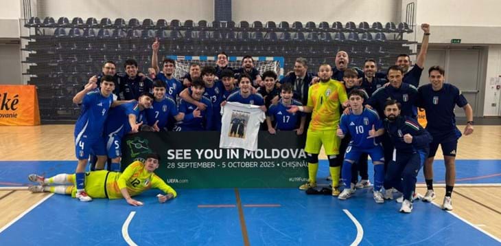 Si vola a Chisinau, in Moldova. La Nazionale Under 19 di futsal si è qualificata alla fase finale dell’Europeo, riuscendoci per la terza edizione di fila. I ragazzi di Vanni Pedrini hanno dominato il Gruppo 1 delle qualificazioni, giocato a Poprad in Slovacchia. Dopo aver superato la Germania all’esordio (5-2) e la Romania nel secondo match (4-2), l’Italia ha battuto 7-4 anche i padroni di casa, chiudendo a punteggio pieno un cammino perfetto. Il passaggio del turno e la conseguente qualificazione alle finali del prossimo fine settembre sono la perfetta testimonianza di un processo di crescita che continua. “Congratulazioni agli Azzurrini e tutto lo staff – dichiara il Presidente della FIGC Gabriele Gravina – in un contesto sempre più competitivo per il futsal internazionale, questo risultato è una tappa fondamentale nel percorso di consolidamento e sviluppo del movimento giovanile italiano”. Dopo aver chiuso avanti 4-0 il primo tempo, l’Italia dilaga nella ripresa, subendo il parziale rientro della Slovacchia (fino al momentaneo 6-4), ma blindando il risultato a doppia mandata grazie al suo capitano Tomasso Ceccarelli, assoluto trascinatore della squadra e autore di una tripletta e due assist.