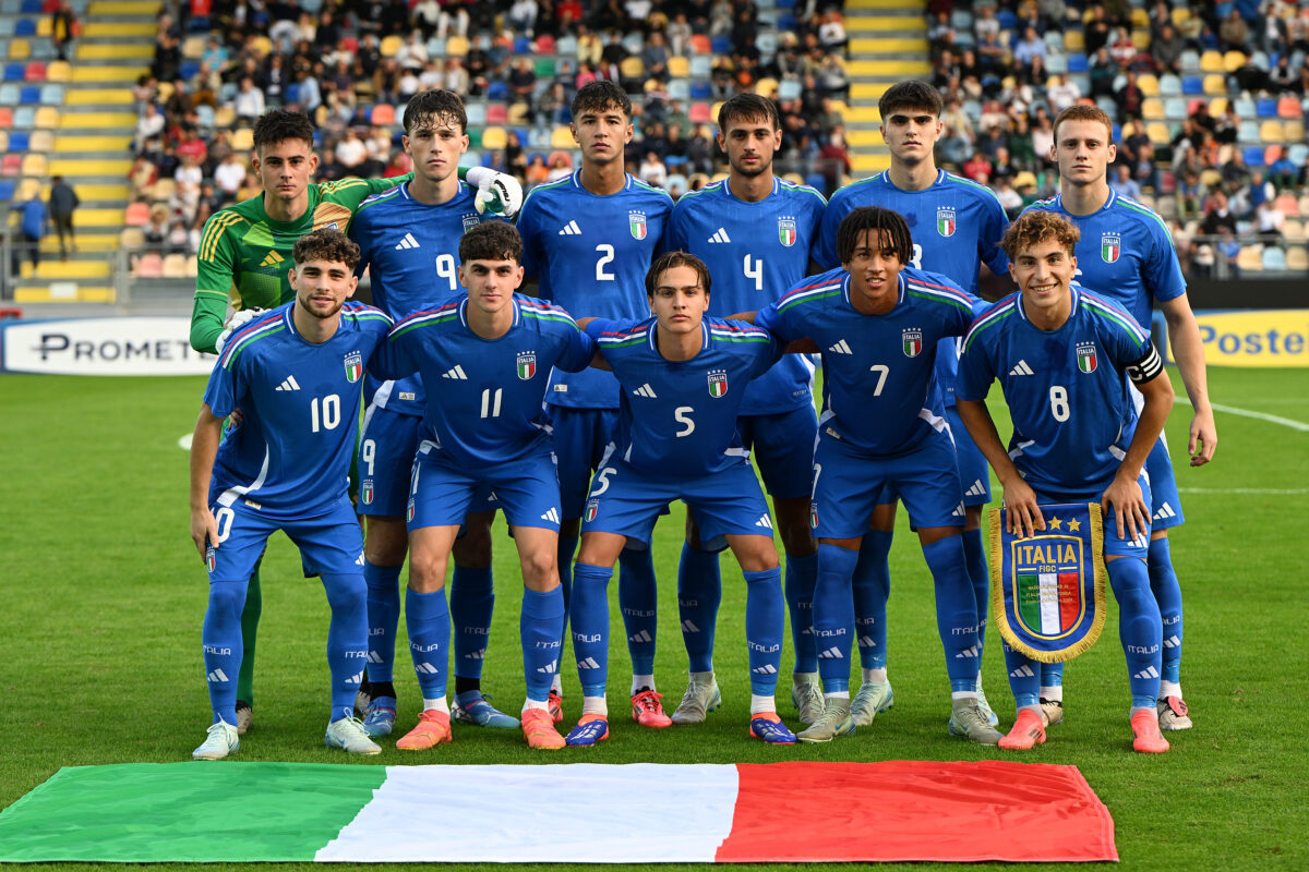 FROSINONE, ITALY – OCTOBER 10: Italy U20 team posing beforeg the Elite League match between Italy U20 and England U20 at Stadio Benito Stirpe on October 10, 2024 in Frosinone, Italy. (Photo by FIGC/FIGC via Getty Images)