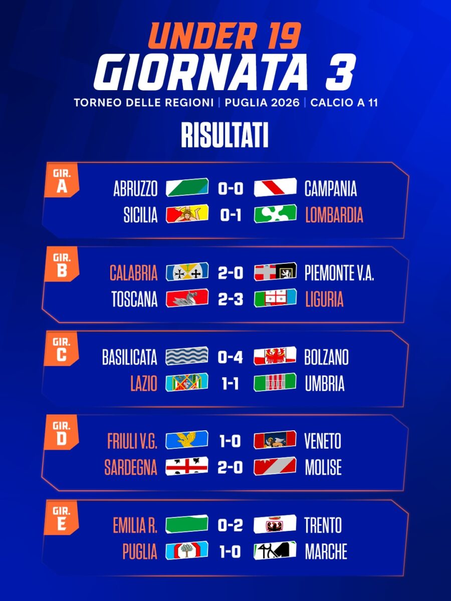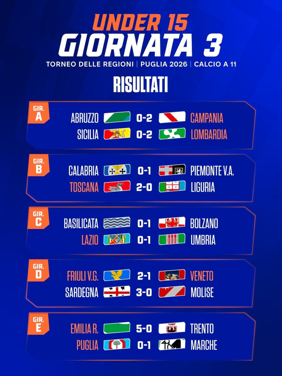 Torneo delle Region: risultati della 3 Giornata