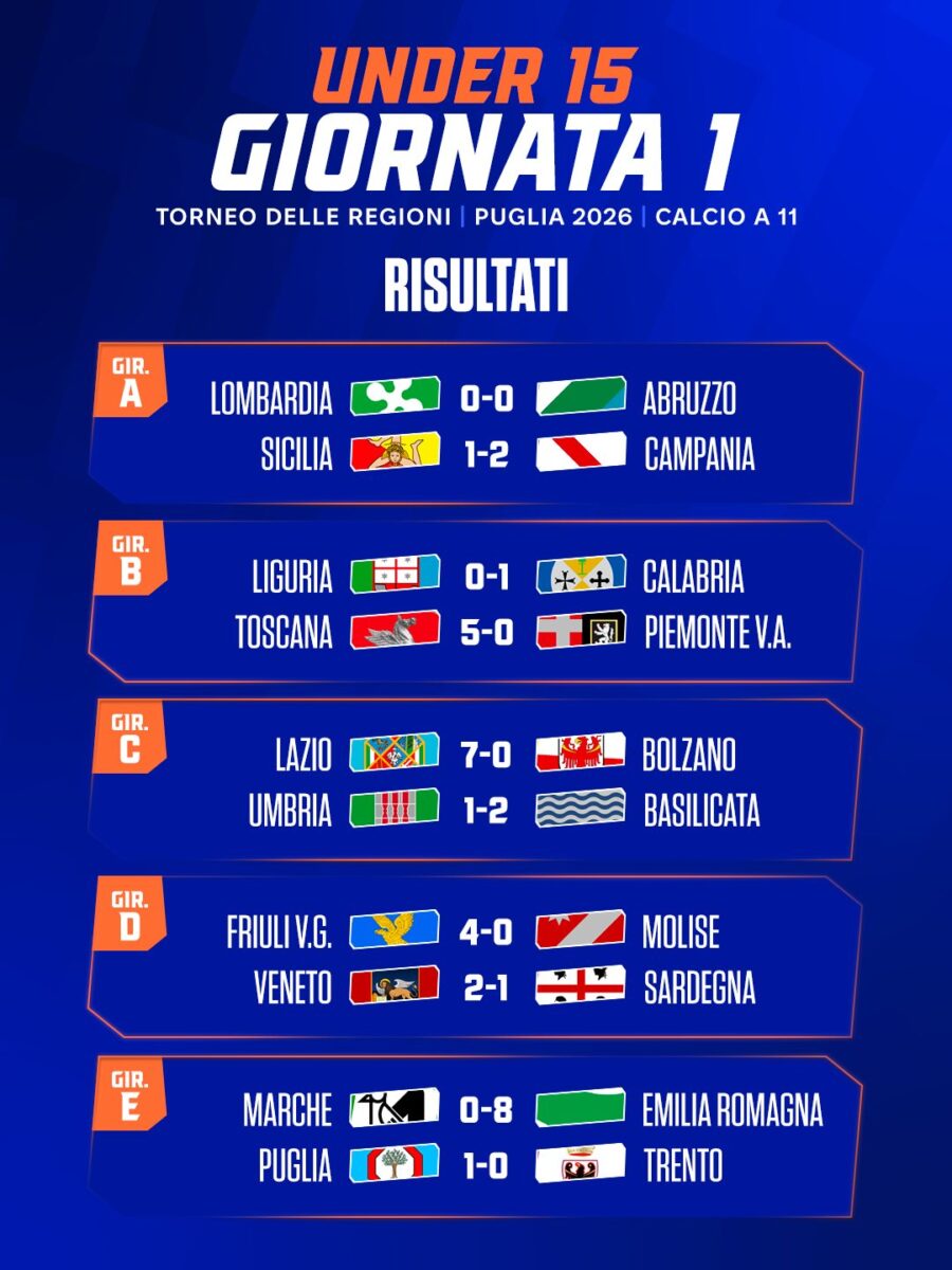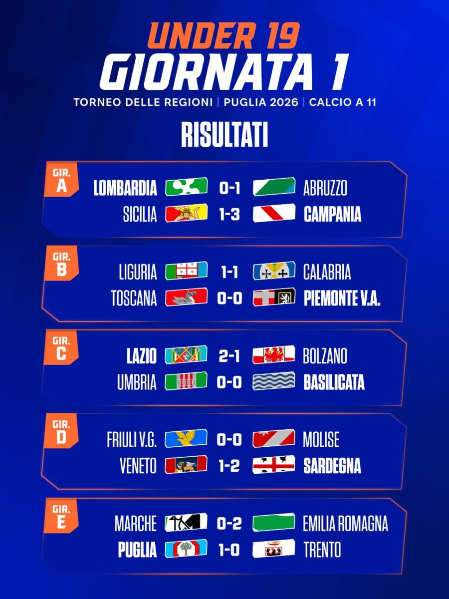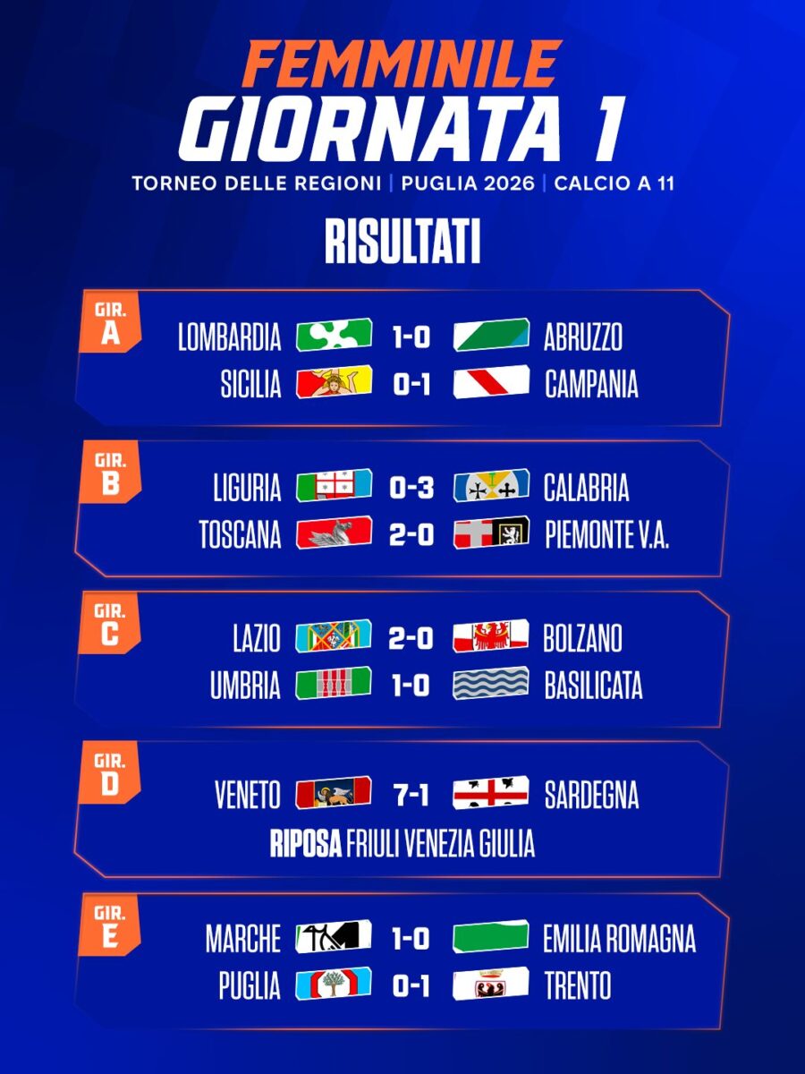 Torneo delle Regioni: 99 gol nella prima giornata della fase a gironi