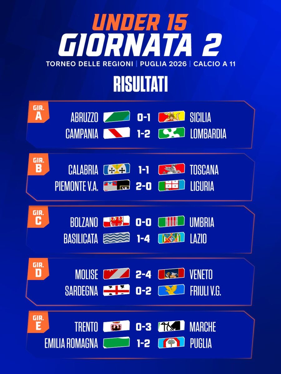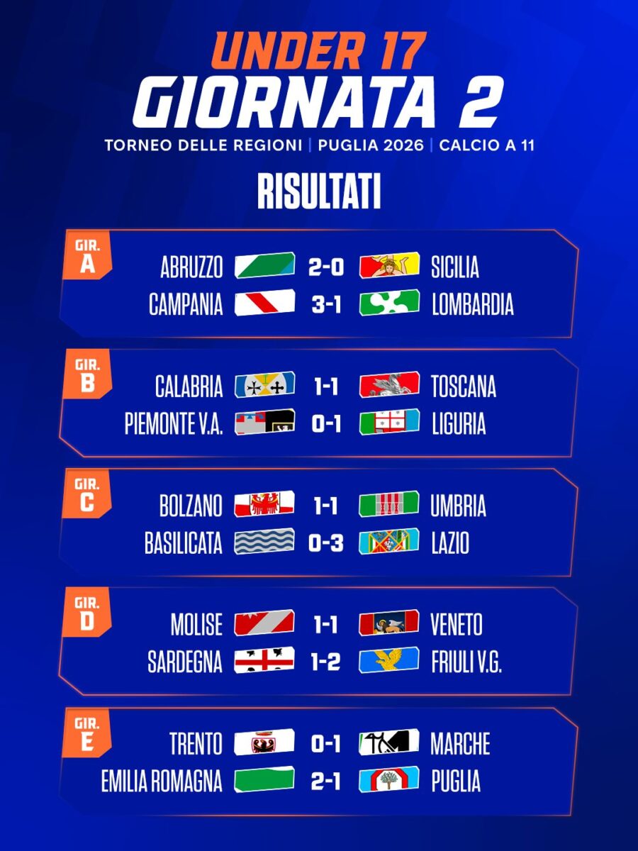» Zonacalciofaidate » Nazionali e Rappresentative » Torneo delle Regioni: risultati della 2 Giornata