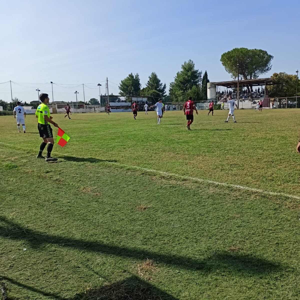 Il primo tempo è estremamente equilibrato: la Vjs Velletri, attenta e concentrata, concede poco ai padroni di casa. Il Setteville però è chiuso bene e non lascia sbocchi, lasciando ai rossoneri uno sterile possesso palla. Va da sé che a sbloccare il parziale diventino fondamentali i calci da fermo: al 35esimo, direttamente da calcio d’angolo, Pansera stacca di testa e costringe alla respinta Antonini. Sul pallone si avventa Stampiglia che di sinistro anticipa tutti e porta in vantaggio i veliterni.