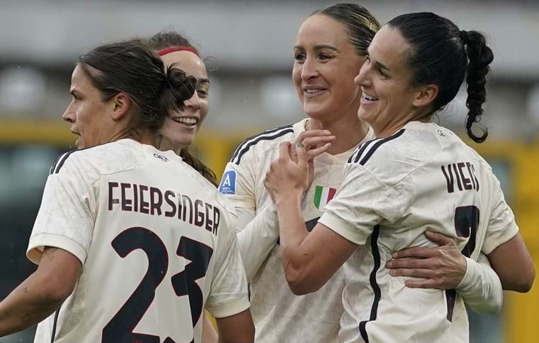 La partita è vivacissima ma la prima frazione di gara si chiude con lo stesso parziale, anche se nel recupero la traversa nega a Prugna la rete del 2-3. Sono invece le giallorosse, all’inizio del secondo tempo, ad arrotondare ulteriormente il punteggio: ripartenza fulminea delle capitoline, Giacinti serve Glionna e l’ala esterna della Roma prende bene la mira realizzando il poker. Terzo gol per la classe ’99 (al rientro dall’infortunio) nel torneo 23/24, che non andava a bersaglio dallo scorso novembre. Le due formazioni in campo al Ricci non rinunciano ad attaccare e nell’ultima mezz’ora succede di tutto: al 60’ arriva il 2-4 firmato da Sabatino, rapida a respingere in porta il gran tiro dalla distanza di Clelland, prima parato e deviato sulla traversa da Ceasar; due minuti dopo risponde Viens, che conquista palla e non lascia scampo a Durand con una conclusione centrale ma molto potente. Al 75’ un eurogol di Kullashi dal limite dell’area vale il 3-5 per le neroverdi, che un minuto dopo segnano ancora con Clelland (colpo di testa sul bell’assist di Kullashi). Le emiliane spingono per agguantare il pari e al 77’ il punteggio si porta sul 5-5: attacco vincente di Monterubbiano al portiere giallorosso e clamorosa rimonta della squadra di Piovani. Le neo campionesse d’Italia però non ci stanno e all’80’ siglano il definitivo 6-5 con Feiersinger, che trafigge Durand con un destro all’angolino imprendibile. Il Sassuolo ci prova fino all’ultimo e allo scoccare del 90′ centra anche un palo con Mihelic, ma al triplice fischio festeggia la Roma, che conquista il 21° successo in 23 gare giocate. Il risultato del Ricci entra però nella storia: nell’era dei tre punti a vittoria infatti (dal 1995/96), solo una volta in precedenza era accaduto che due squadre segnassero almeno cinque gol a testa in una singola gara nel massimo campionato – il 27 gennaio 2001, nella gara tra Gravina Catania e AGSM Verona (5-5).