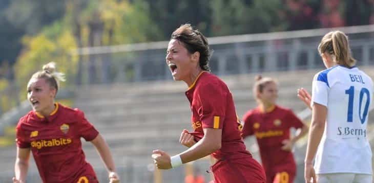 Nel lunch match domenicale del “Tre Fontane” passa la Roma di Spugna, che dopo essersi aggiudicata 1-0 l’esordio nella fase a gironi di Women’s Champions League con lo Slavia Praga, si ripete dopo tre giorni in campionato con lo stesso risultato e la stessa marcatrice: Valentina Giacinti. Sul campo delle capitoline la prima chance per il vantaggio è di Glionna al minuto 12: Lipman perde palla nel contrasto con Andressa, l’attaccante calcia potente e sfiora la traversa. Al 22’ però si fa vedere anche il Como con Beccari, che raccoglie il suggerimento al tiro di Kubassova e costringe Lind a deviare in calcio d’angolo un’insidiosa conclusione nello specchio. Le padrone di casa conducono il match ma le ospiti difendono con ordine e al termine del primo tempo si resta sullo 0-0. A inizio ripresa doppia occasione per la squadra di Spugna: destro di Serturini che Beretta intercetta e indirizza sul palo, Làzaro si avventa sul pallone di ritorno ma il portiere classe 2003 con un altro intervento strepitoso nega il gol alla spagnola, a digiuno da sette presenze nel massimo campionato. Poco dopo proprio Serturini e Làzaro lasciano il posto a Haavi e Giacinti. La numero nove giallorossa entra bene in partita e la prima conclusione termina di poco alta. Nei minuti successivi ci provano anche Giugliano (destro neutralizzato dal portiere lariano) e la subentrata Haavi (questa volta è Beil a salvare sulla linea il tentativo della norvegese). Il pressing delle capitoline però funziona e al 72’ si traduce nel gol vittoria: passaggio rasoterra di Glionna dalla destra, Giacinti raccoglie e fulmina Beretta tra i pali. Quinto sigillo in Serie A con la maglia della Roma per l’attaccante azzurra, che diventa inoltre solo la seconda giocatrice a realizzare almeno cinque reti nelle prime sette partite stagionali del club giallorosso nel torneo – la prima è stata Paloma Làzaro, che ne totalizzò sei nelle prime sette nel 20/21. All’85’ il Tre Fontane celebra il ritorno in campo di Ciccotti, assente da mesi per infortunio, e proprio lei in pieno recupero sfiora la rete del raddoppio. Al triplice fischio il punteggio resta però invariato: 1-0 per la Roma, che grazie al successo di oggi e al mezzo passo falso dell’Inter si prende con la Fiorentina il primato in classifica ai danni delle nerazzurre, prossime avversarie in campionato.
