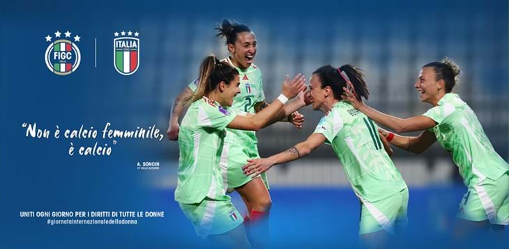 “Non è calcio femminile, è calcio”. La frase pronunciata dal Ct della Nazionale femminile Andrea Soncin nel dicembre 2023, dopo la vittoria dell’Italia sulla Svizzera in UEFA Women’s Nations League, è stata scelta dalla FIGC per celebrare la Giornata internazionale della donna e accompagnare l’immagine di un’esultanza delle calciatrici Azzurre con la nuova maglia adidas, la prima appositamente ideata per la Nazionale femminile.
