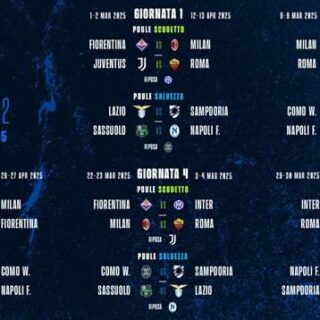 Serie A Femminile 13 Febbraio 2025 di Redazione1 · Published 13 Febbraio 2025 Serie A Femminile. Poule scudetto, è subito Juventus-Roma. Ecco il calendario della seconda fase: si riparte l’1 e il 2 marzo, c’è anche Fiorentina-Milan