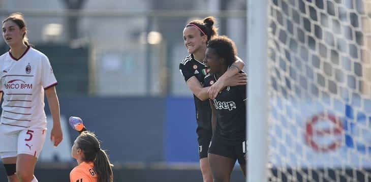 Lato Juventus, sempre con la solita Beerensteyn, protagonista di una lunga azione d’attacco in solitaria in cui si è portata dietro il pallone prima verso il fondo poi al centro di nuovo ma senza trovare il giusto spazio per concludere. Poi, lato Milan, è stata Vigilucci dall’altro lato del campo a liberare un tiro-cross dalla distanza ma Peyraud-Magnin ha bloccato senza troppa apprensione. Ma tra Juventus e Milan è stata una partita infinita e al 95′ riecco Beerensteyn avanti che si è conquistata un calcio di rigore battuto poi da Caruso. Quest’ultima dagli undici metri non ha sbagliato e ha chiuso il match sul risultato di 2-0, rispondendo così al successo di ieri della Roma. Per la prima volta in questo campionato la Juventus ha vinto tre partite di fila; di contro il Milan ha perso due gare consecutive, considerando tutte le competizioni, per la prima volta dallo scorso agosto.