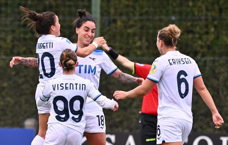 Nel sabato della seconda giornata della Poule Salvezza di Serie A eBay 2024/25, turno in cui Serie A e Serie B Femminile celebrano la Giornata internazionale dei diritti delle donne, fa festa ancora la Lazio. La squadra biancoceleste batte 4-0 il Napoli grazie alle reti di Connolly (29’, al suo primo gol in Serie A), Visentin (63’), Piemonte (81’) e Kajan (97’), salendo a 26 punti in classifica e ipotecando così la permanenza nel massimo campionato, visto il +18 sull’ultimo posto, attualmente occupato dalla Sampdoria con 8 punti. Lazio che centra il settimo risultato utile consecutivo tra tutte le competizioni – il sesto in campionato, con cinque vittorie – e conquista tre successi esterni consecutivi in Serie A per la prima volta dal periodo novembre 2002-gennaio 2003. Napoli che arriva invece al 14° ko nelle 20 partite giocate finora in questo campionato; il club partenopeo non ha mai raccolto più sconfitte allo stesso punto di una singola edizione della competizione (14 anche nel 2020/21 e 2023/24).