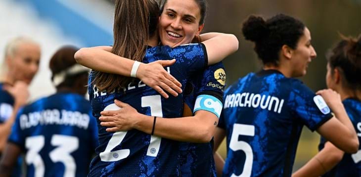 In casa, allo Stadio Breda, l’Inter si impone 2-0 sulla Fiorentina in una gara ricca di emozioni e occasioni. La rete che sblocca il match arriva dopo appena 5 minuti con il bel gol di Pandini che conclude nel migliore dei modi un’azione corale innescata da Ajara Njoya: apre il piattone sinistro e batte Schroffenegger dopo il suggerimento perfetto di Karchouni. Ma la numero 18 nerazzurra si ripete poco dopo e al 21′ arriva il gol della doppietta. Cinque gol in totale realizzati finora in stagione, ma questi sono i primi due segnati in casa. La Fiorentina per la prima mezz’ora di gioco non mette mai in difficoltà l’Inter poi è la solita Boquete che prova a suonare la sveglia. Si invola verso la porta, trova Sabatino in corsa che suggerisce per Lundin ma l’Inter chiude bene e la palla si perde oltre la linea del fondo. Nel secondo tempo sono ancora le nerazzurre che partono forte e Schroffenegger è chiamata presto ad una doppia parata, la seconda soprattutto decisiva su un’insidiosissima conclusione di contro-balzo di Karchouni. Ma il muro viola regge. La Fiorentina prova a risvegliarsi al 60′ ancora con Lundin che però una volta viene pescata in posizione di fuorigioco e poco dopo liscia da pochi passi l’assist di Sabatino. Ma è all’81’ che il forcing della Fiorentina raggiunge la sua massima espressione. Tuttavia la squadra viola viene bloccata per ben tre volte da altrettanti interventi provvidenziali di Sonstevold: prima su Catena, poi su Sabatino e poi ancora su Mascarello. Decisiva in questo frangente la numero 2 norvegese dell’Inter che mantiene così la porta inviolata. Anzi, la squadra nerazzurra va anche ad un passo dal 3-0 con il colpo di testa di Marinelli che però si stampa sul palo. Ma le emozioni non finiscono mai: Catena stavolta salta Sonstevold ma al momento del tiro trova Merlo e in questa occasione è la numero 13 nerazzurra che salva la porta difesa da Durante. La gara dunque termina sul 2-0 tutto firmato Pandini e l’Inter sale a quota 35 punti in classifica dopo aver vinto due incontri casalinghi di fila in Serie A per la prima volta dallo scorso ottobre. La Fiorentina invece ha perso tre trasferte di fila per la prima volta in Serie A e sempre per la prima volta nella competizione non ha trovato la rete in tre gare esterne consecutive.