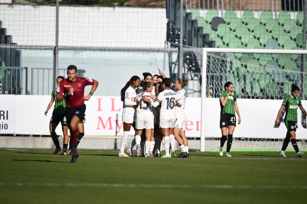 SASSUOLO-LAZIO 1-2. Allo stadio “Enzo Ricci” le ospiti vanno subito vicino al vantaggio con Piemonte, che impatta bene di testa un pallone spiovente da sinistra mandandolo di pochissimo sopra la traversa. Il primo squillo neroverde arriva invece con Eto, che sciupa un’ottima chance da dentro l’area con un tiro fuori misura. Con il passare dei minuti cresce però la Lazio, che al minuto 33 sblocca il punteggio con Piemonte: serie di rimpalli e di respinte di Durand sugli sviluppi di un corner e tap-in vincente della centravanti. Il portiere neroverde al 38’ nega a Le Bihan il raddoppio, che tuttavia si concretizza poco dopo ancora con Piemonte (MVP del match in base ai dati Opta), rapida ad avventarsi su un pallone sotto porta e a siglare il suo sesto gol nel campionato in corso, nonché la sua seconda doppietta dopo quella contro il Milan di inizio novembre.