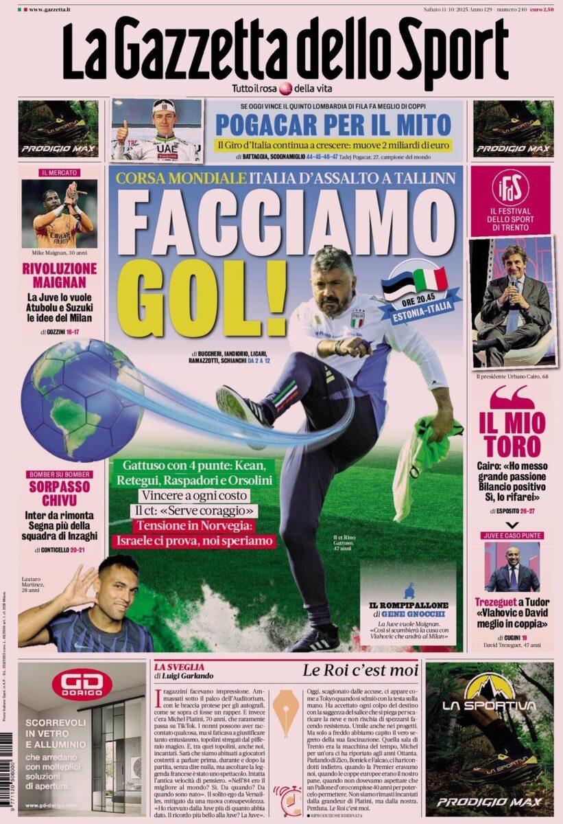 Le Prime Pagine dei Quotidiani Sportivi del 10 Ottobre di Redazione · Pubblicato 11 Ottobre 2025 · Aggiornato 11 Ottobre 2025 Share