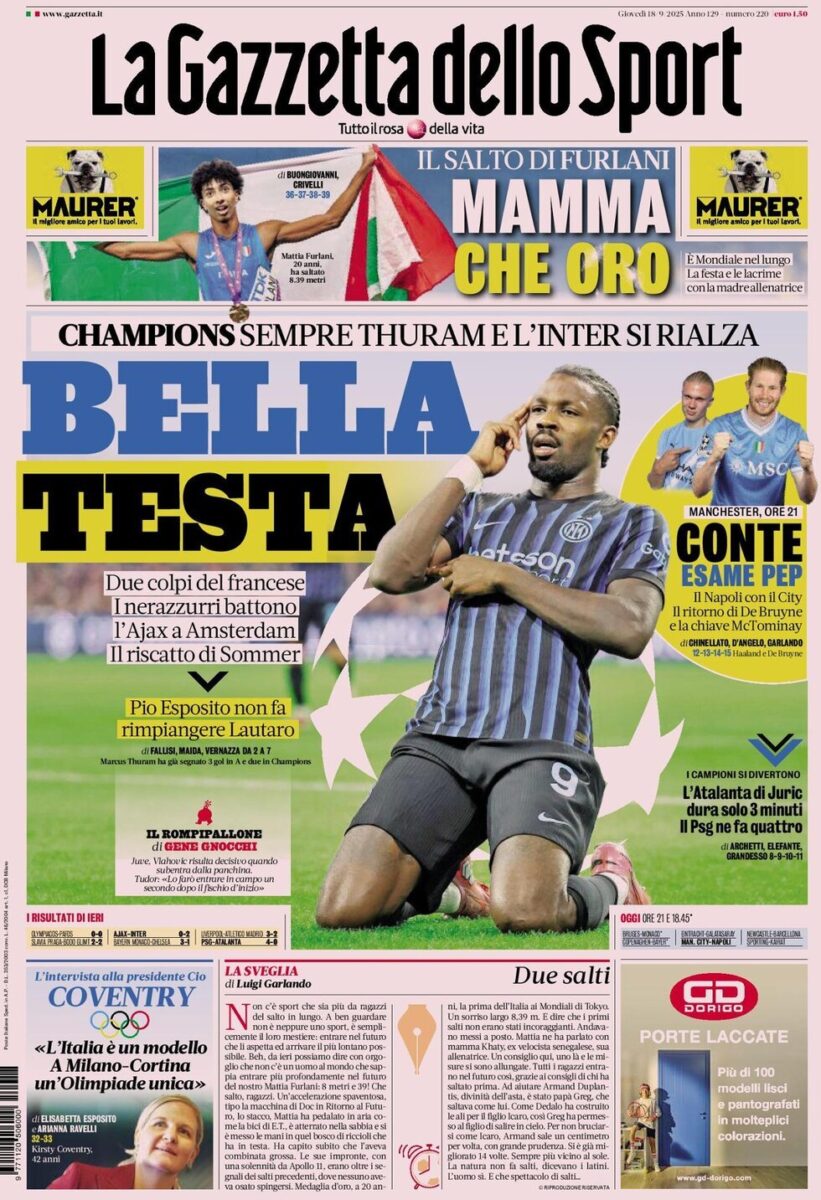 Le Prime Pagine dei Quotidiani Sportivi di Giovedi 18 Settembre di Redazione · Pubblicato 18 Settembre 2025 · Aggiornato 18 Settembre 2025 Share