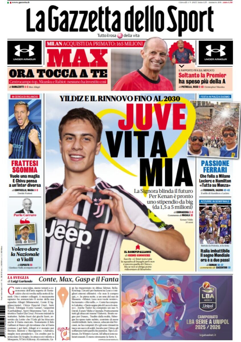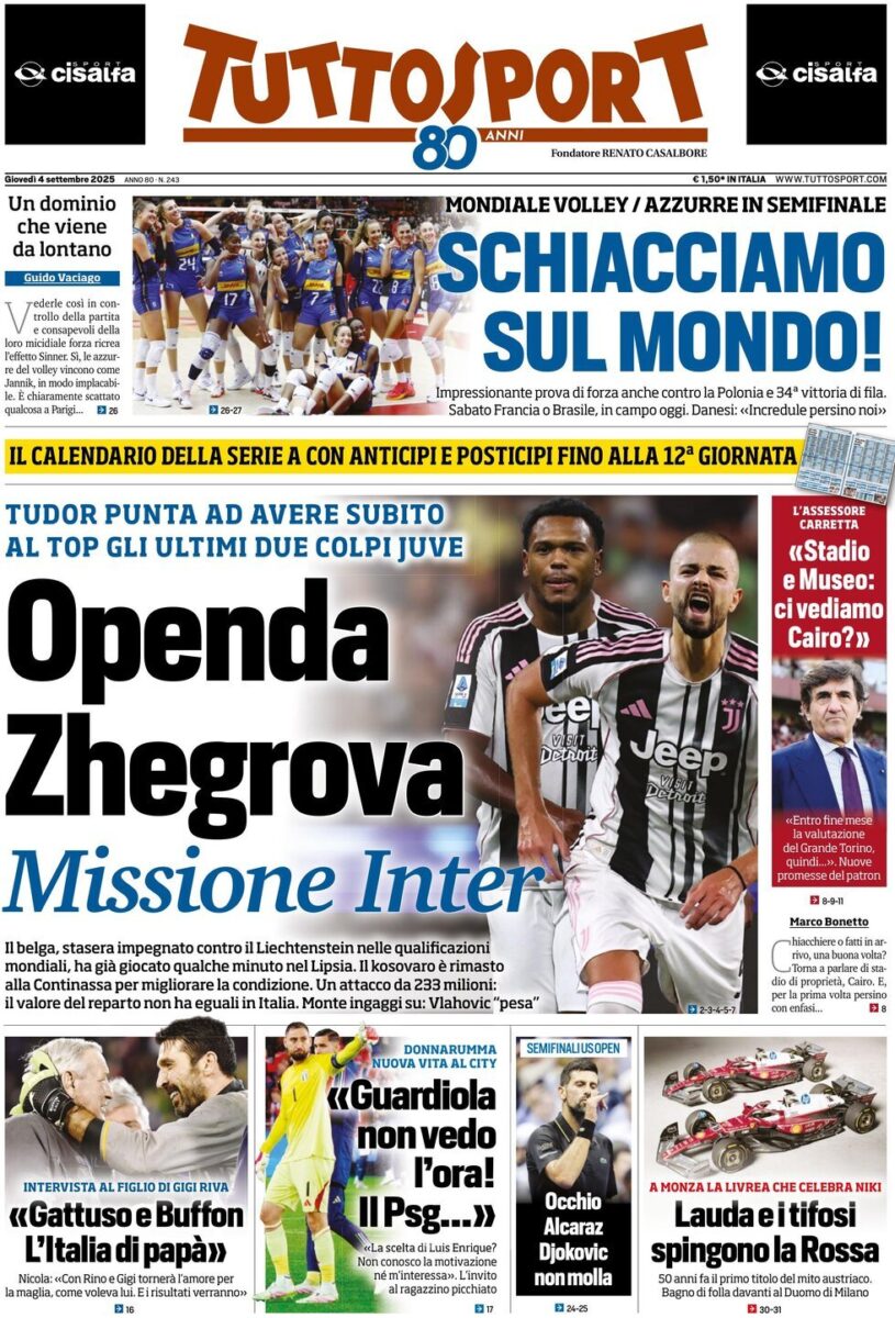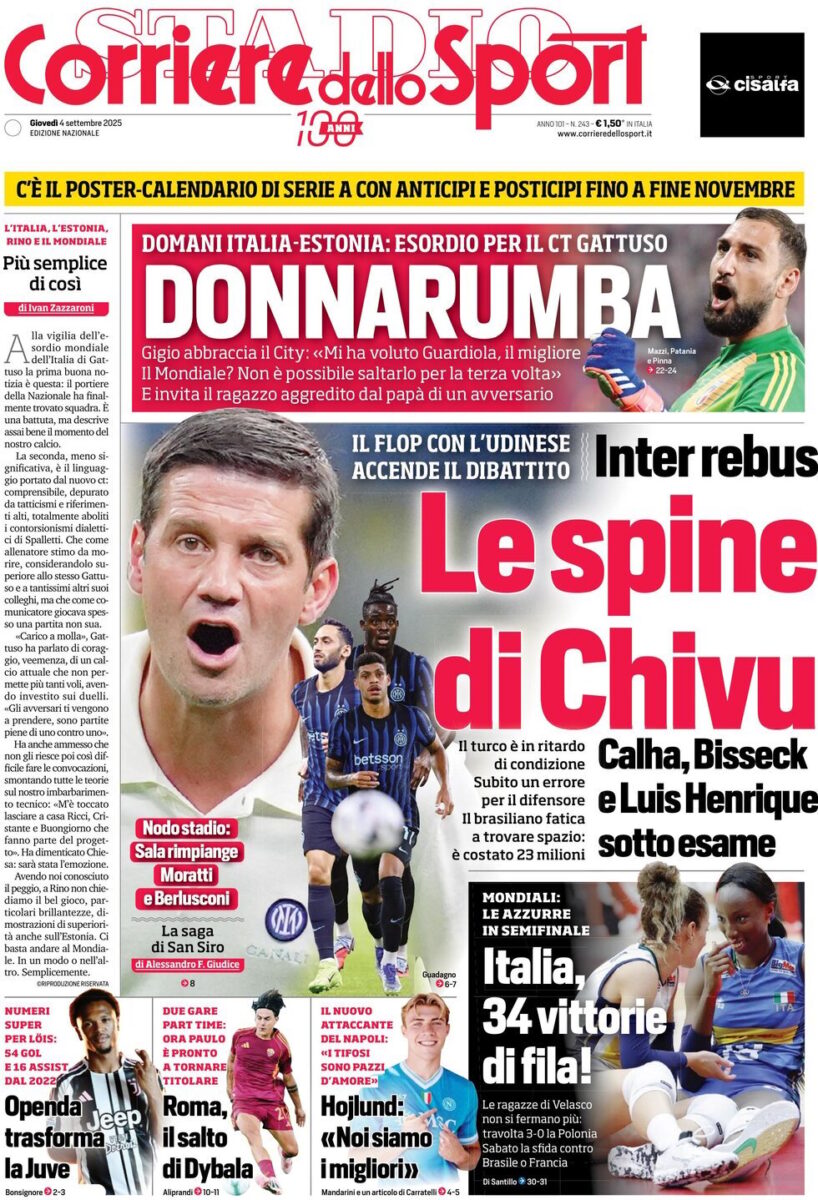 » Zonacalciofaidate » Serie A » Le Prime Pagine dei Quotidiani Sportivi di Giovedi 4 Settembre
