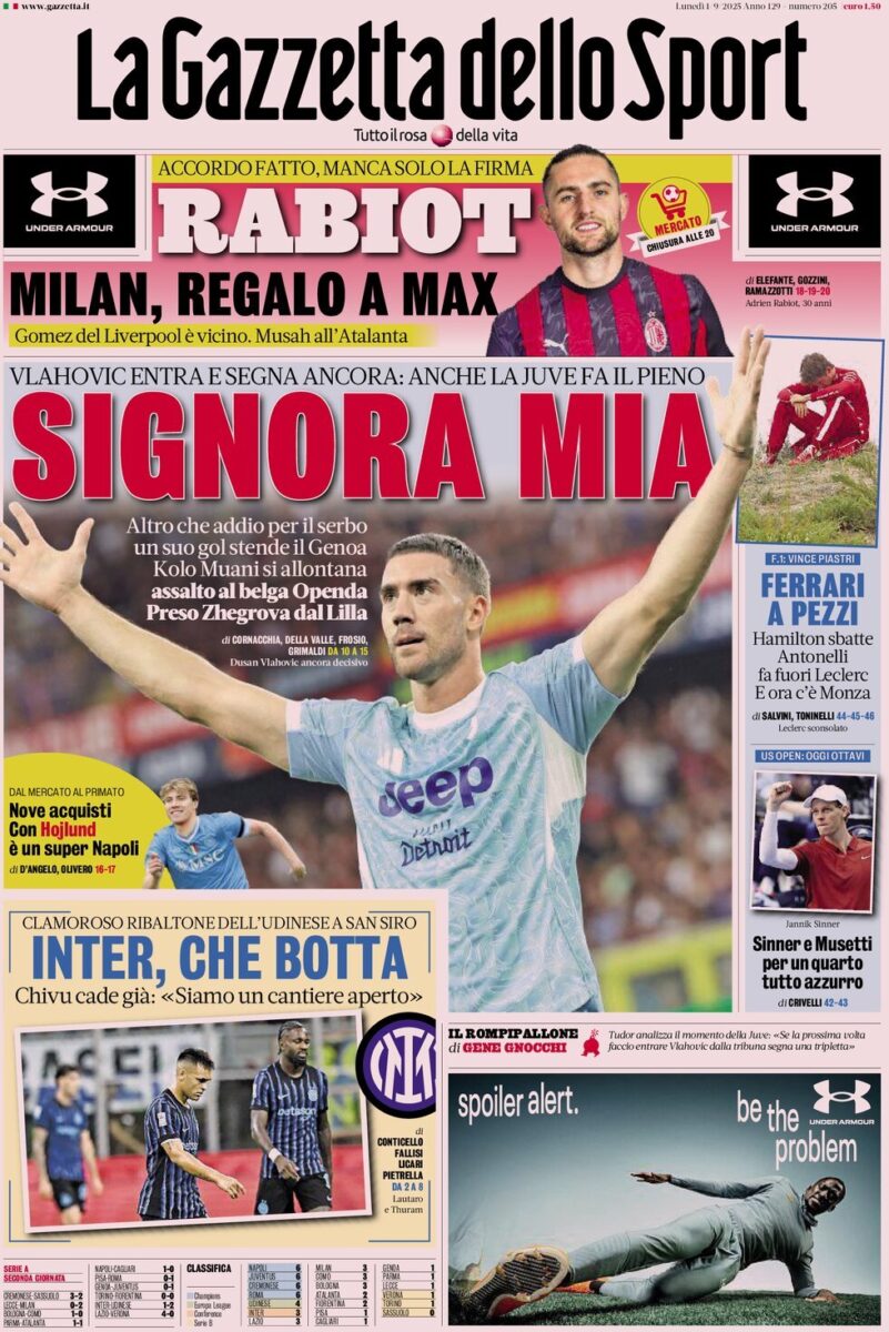 Le Prime Pagine dei Quotidiani Sportivi di Lunedi 1 Settembre di Redazione · Pubblicato 1 Settembre 2025 · Aggiornato 1 Settembre 2025 Share