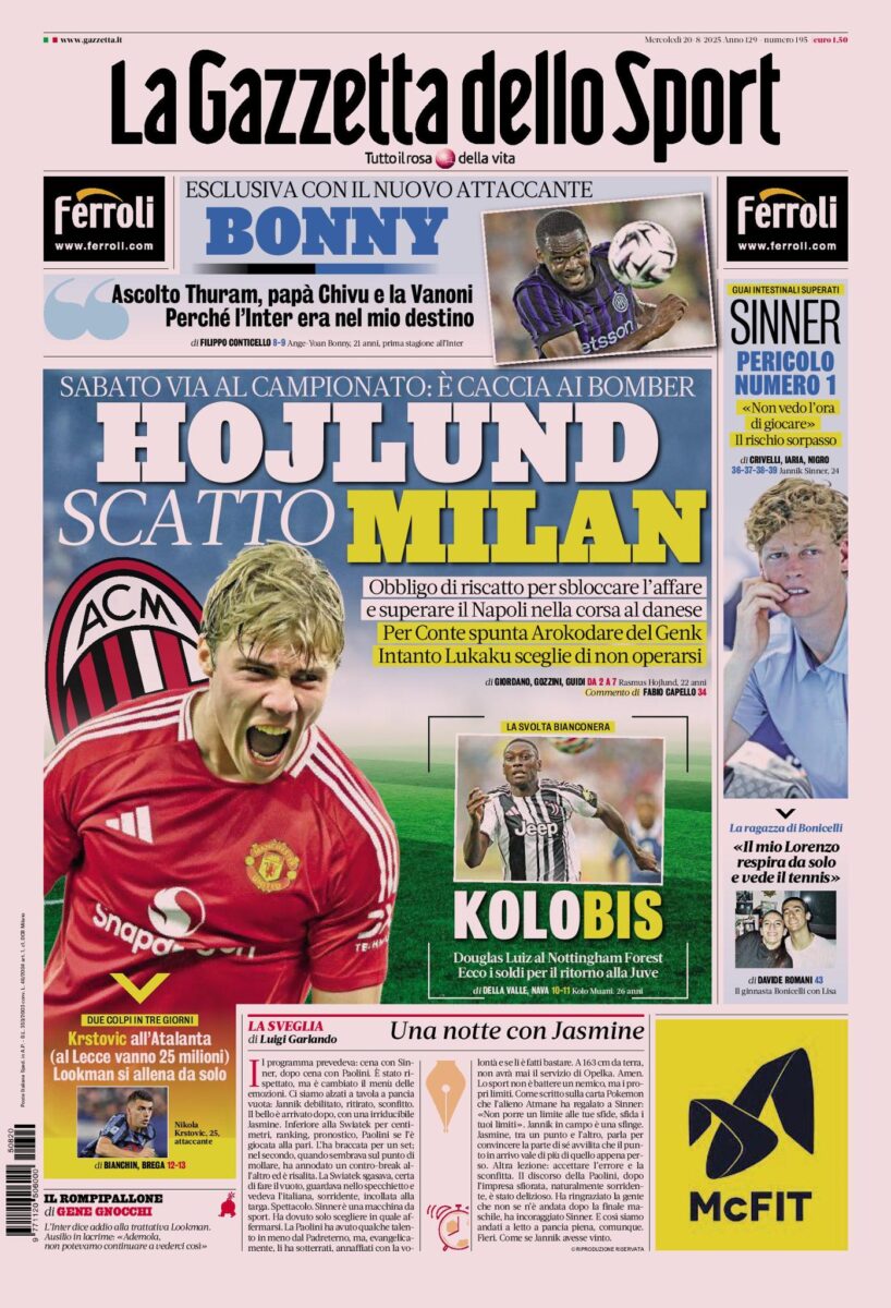Le Prime Pagine dei Quotidiani Sportivi di Mercoledi 20 Agosto di Redazione · Pubblicato 20 Agosto 2025 · Aggiornato 20 Agosto 2025 Share