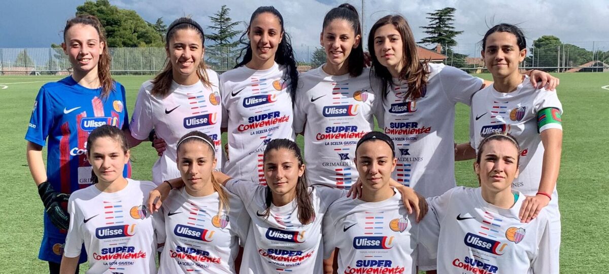 Catania-Fesca Bari 1-0: le rossazzurre conquistano un successo sofferto ma ampiamente meritato al termine di un combattuto scontro diretto in chiave salvezza, nel girone C del campionato femminile Serie C 2021/22. Il debutto tra le mura amiche in questo torneo coincide con la prima vittoria stagionale, firmata da Beatrice Vitale: in avvio di ripresa, l’attaccante si coordina al meglio sull’assist della Mangiameli e con una splendida torsione spedisce di testa il pallone all’incrocio dei pali, siglando la rete decisiva. L’allenatore etneo Peppe Scuto commenta: “Partita molto difficile, venivamo da una batosta e non era semplice risollevarsi. Siamo partiti con un 3-4-3 molto offensivo e in corso d’opera siamo passati al 3-5-2; nel primo tempo siamo stati più intraprendenti dell’avversario ma non abbiamo approfittato della superiorità numerica dopo l’espulsione della Trotta per fallo sulla Vitale lanciata a rete. Nella ripresa, dopo il nostro vantaggio, le pugliesi hanno reagito ma anche noi abbiamo creato nuovamente i presupposti per segnare, sbagliando qualcosa in fase di finalizzazione. Dopo tre partite, la squadra è stata finalmente più compatta e non abbiamo subito gol. Stiamo crescendo ed è molto importante, considerando che la nostra è probabilmente la formazione più giovane in Italia: basti pensare che la nostra atleta più grande è nata nel 2001, come la loro calciatrice più giovane, e la nostra Kimberly Mangiameli, classe 2007, è stata probabilmente la migliore in campo. Con la società, abbiamo scelto la “linea verde” valorizzando le giovani della Sicilia orientale. C’è soddisfazione per questa vittoria, complimenti alle nostre ragazze e adesso pensiamo alla prossima gara, a Napoli: sarà un altro scontro diretto per la permanenza in questa categoria”.