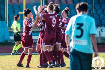 Arezzo subito all’arrembaggio dai primissimi minuti di gara. La prima vera occasione capita sui piedi di Razzolini imbeccata egregiamente da un lancio di Cirri, la conclusione della numero 9 amaranto finisce di poco a lato. Le ragazze di mister Bonci sono padrone del gioco e al minuto 24 passano in vantaggio con Zelli che direttamente da calcio di punizione con un tiro potente batte Ceriani. E’ l’inizio dello stradominio amaranto, alla mezz’ora raddoppio con Razzolini che in scivolata trova l’ottavo timbro stagionale dopo una discesa degna di nota di Zelli. Tra il 43′ e il 45′ l’Arezzo cala il poker con una doppietta di Gnisci, che in entrambe le occasioni si fa trovare al posto giusto nel momento giusto. Nella ripresa mister Bonci inserisce forze fresche e la storia della partita non cambia. Al 53′ arriva una sfortunata deviazione della difesa marchigiana sugli sviluppi di un corner battuto da Lulli per la quinta rete amaranto. Avvolgente e inarrestabile la manovra dell’Arezzo che continua a creare azioni pericolose e al 67′ trova il sesto gol con Paganini, rientrata dopo un lungo stop, su assist di Leonessi. Non solo quantità ma anche tanta qualità, al minuto 82 Tuteri si mette in proprio e trova un gran gol dalla distanza con il pallone che si infila sotto la traversa, nulla da fare per Ceriani. Prima del fischio finale all’ultimo secondo arriva il definitivo 8-0 con Lulli che sorprende il portiere direttamente da corner. Per l’Arezzo continua la rincorsa sulla capolista Bologna che non si ferma e ottiene il nono successo consecutivo.