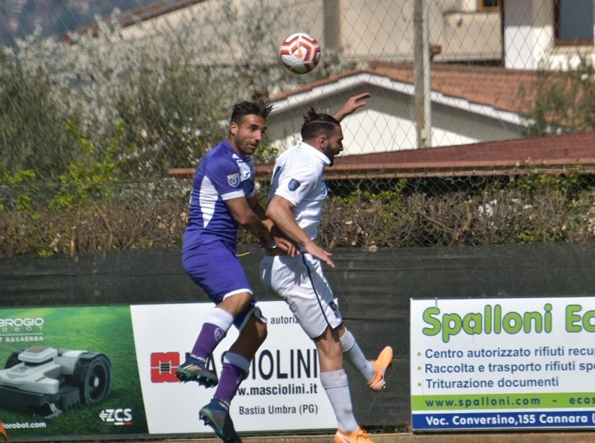 Al 38′, però, la compagine di Ostia va in gol, e trova il pari prima dell’intervallo. Lazzeri prova la conclusione da fuori, sulla palla allontanata dai difensori umbri, e il tiro diventa un assist per Moi (nella foto di Spadolini in un istante del match) che, penetrato nel cuore dell’area, colpisce per l’1 a 1.