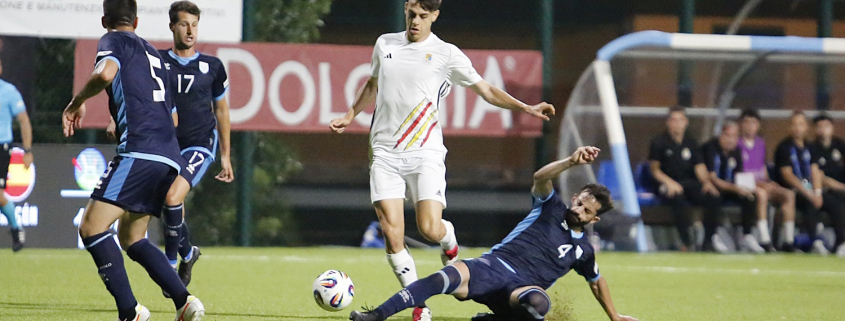 Saltano gli schemi nel finale, ma Aragón continua a sciupare occasioni per chiudere l’incontro – come con Charlez all’82’. Di lì a poco torna a farsi pericolosa la NAT San Marino, con un’azione perimetrale che Benincasa cerca di chiudere con un tunnel al limite per liberare il destro. La difesa iberica collassa bene centralmente, poi sul prosieguo Sartori scarica un destro potente sul corpo di un avversario.