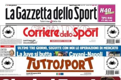 Le prime pagine dei Quotidiani Sportivi Italiani e Stranieri: Gazzetta dello Sport, Corriere dello Sport,Tutto Sport,L’Equipe,Marca,Mundo,A Bola,AS
